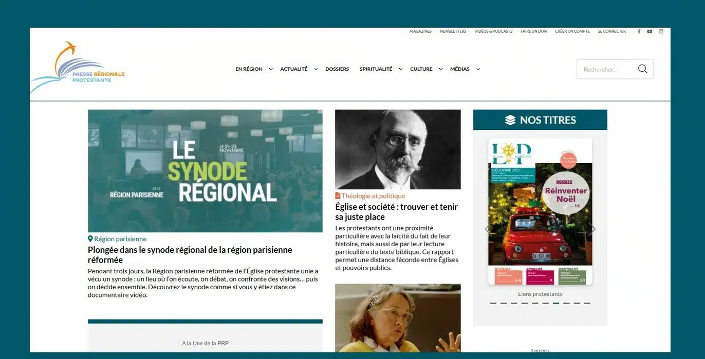 Grande nouveauté : le site est désormais hébergé sur la plate-forme web de l’Église protestante unie. Les Églises locales peuvent désormais utiliser facilement, sur leur site et dans les newsletters, les articles qui les concernent. La PRP se positionne ainsi comme un véritable outil au service des Églises, créant et partageant des contenus de qualité accessibles à tous.